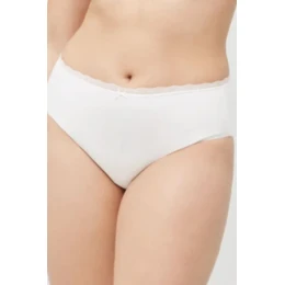 Dámske bavlnené nohavičky, jemne zakončené na nohavičkách, úzka bavlnená čipka v páse.