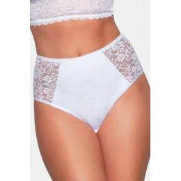 Dámske nohavičky s vyšším pásom. Vpredu je čipka podšitá jemne obopnutou látkou, ktorá modeluje bruško. Pozadie je bavlnené. 92% bavlna, 8% elastan.