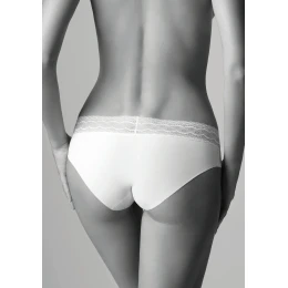 Dámske nohavičky klasického, skôr nižšieho strihu značky Cotonella zdobené v páse elastickou kvetinovou čipkou po celom obvode. Nohavičky sú strihané laserom, a tak sa nemačkajú a nevzhľadne zarezávajú. Vnútorná časť je osadená bavlneným klinom pre pohodlné nosenie.