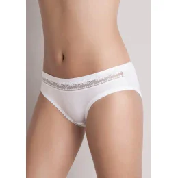 Dámske nohavičky od známej talianskej značky Cotonella. Nohavičky sú vyrobené z veľkého podielu bavlny a sú veľmi príjemné na nosenie. Majú nižší strih s obojstrannou látkovou gumičkou v páse a na nohavičkách, ktorá je na prednej časti obvodu okrášlený elastickou priesvitnou čipkou. Do vnútorného dielu je zapracovaný bavlnený klin. Nohavičky sú dokonale jemné a priezvisko na celodenné nosenie. Balenie obsahuje 2 kusy bielych alebo 2 kusy čiernych nohavičiek.