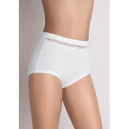 Dámske nohavičky od známej talianskej značky Cotonella. Nohavičky sú vyrobené z veľkého podielu bavlny a sú veľmi príjemné na nosenie. Majú vyšší strih s obojstrannou látkovou gumičkou v páse a na nohavičkách, ktorá je na prednej časti obvodu okrášlený elastickou priesvitnou čipkou. Do vnútorného dielu je zapracovaný bavlnený klin. Nohavičky sú dokonale jemné a priezvisko na celodenné nosenie. Balenie obsahuje 2 kusy bielych alebo 2 kusy čiernych nohavičiek.