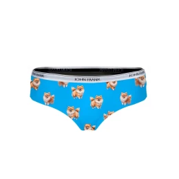 Dámske hipster nohavičky od značky John Frank vyrobené z vysokého podielu bavlny. Nohavičky s módnou potlačou sú veľmi príjemné na dotyk a pohodlné na nosenie. Jemný, stredne široký elastický pás má okolo seba logo John Frank. Do vnútornej časti je zakomponovaný bavlnený klin pre pohodlné nosenie.