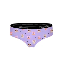 Dámske hipster nohavičky od značky John Frank vyrobené z vysokého podielu bavlny. Nohavičky s módnou potlačou sú veľmi príjemné na dotyk a pohodlné na nosenie. Jemný, stredne široký elastický pás má okolo seba logo John Frank. Do vnútornej časti je zakomponovaný bavlnený klin pre pohodlné nosenie.