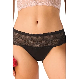 Široký čipkovaný pás dodáva spodnej bielizni ľahkosť a eleganciu, zatiaľ čo nohavičky sa dokonale prispôsobia bokom. Tento model je k dispozícii v klasickej čiernej farbe a jemnom béžovom odtieni, takže ho možno ľahko zladiť s rôznymi štýlmi a farbami oblečenia. Je dokonalou voľbou na každodenné nosenie aj na výnimočné príležitosti.