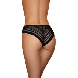 Nohavičky sú bezšvové. Predný diel modelu je hladký. Zadný diel nohavičiek je lemovaný laserom a je ozdobený vsadkami zo sieťoviny.