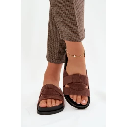 Dámské pantofle Eko semiš s pásky tmavě hnědé Marivessa