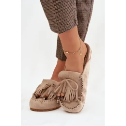 Dámské pantofle Mule s třásněmi a korálky Béžové Belissa