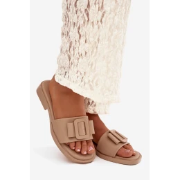 Dámské pantofle na nízkém podpatku s přezkou béžové Melivra