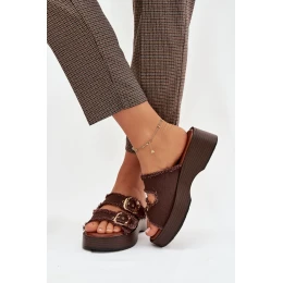 Dámské pantofle na platformě se zlatými sponami čokoládové Renelisse