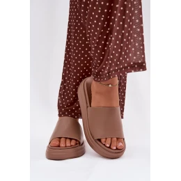 Dámské pantofle vyrobené z eko kůže. Hladké provedení jim dodává nadčasový charakter a platforma zajišťuje pohodlí při nošení a jemně zvýrazňuje siluetu. Model se skvěle hodí do každodenních outfitů, snadno se přizpůsobí letním šatům i casual setům. Elegantní volba pro ženy, které ocení jednoduchost a pohodlí. Při výběru velikosti se řiďte tabulkou velikostí.