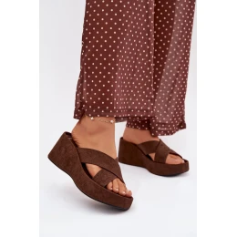Dámské pantofle na platformě z eko semiše čokoládové Calorine