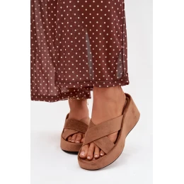 Dámské pantofle na platformě z eko semiše hnědé Calorine