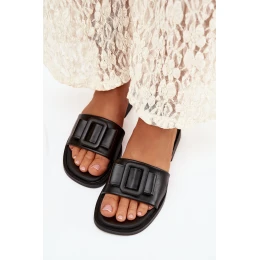 Dámské pantofle na ploché podrážce s přezkou Černé Melivra
