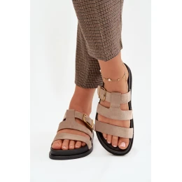 Dámské pantofle s pásky a zlatým přezkou béžové Ulirissa