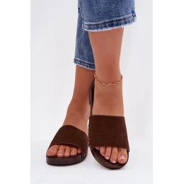 Dámské pantofle s přezkami na nízkém podpatku Čokoládové Amelvessa