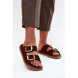 Dámské pantofle z imitace semiše se zlatými přezkami čokoládové Averia