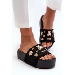 Dámske papuče na platforme s kolíkmi Black Zranesia