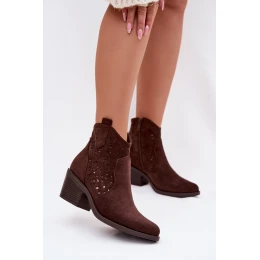 Dámské perforované kotníkové boty Kovářské boty na podpatku S.Barski HY61-8012 Čokoládové
