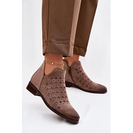 Dámské perforované kotníkové boty na nízkém podpatku Vinceza 58626 tmavě béžové