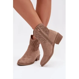 Dámské perforované kotníkové boty na podpatku Béžové Briavine