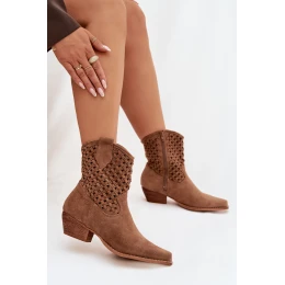 Dámské perforované kotníkové boty na podpatku béžové Ferissa