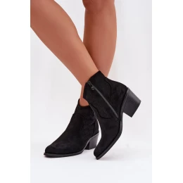 Dámské perforované kotníkové boty na podpatku S.Barski HY61-8013 Černé