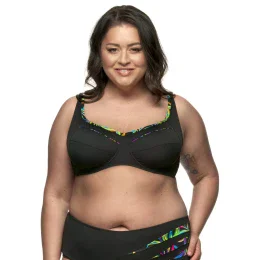 Plavky FANTASY z kolekcie Tropic. Plavková podprsenka nie je vystužená, má kostice a vyšší stred. Má členené košíčky pre dostatočnú oporu aj pre väčšie prsia, ktoré z boku mierne tlačia na prsia. Širšie ramienka sú pevne všité a majú nastaviteľnú dĺžku. Obvod je vyšší, na bokoch vystužený silikónovými kosticami, ktoré sa vám prispôsobia, a je zakončený kovovou sponou na zapínanie. Celý kúsok je podšitý. Podprsenku možno kombinovať s akoukoľvek spodnou bielizňou z rovnakej kolekcie.