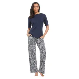 Plážové nohavice Pastunette s vreckami - elegantné tmavomodré spoločenské nohavice, nočné nohavice alebo plážové nohavice s bielou grafickou potlačou.možno poznáte mäkké vlastnosti bambusu?s viskózou získate presne tie isté vlastnosti.fantastické pohodlie a mäkkosť, ktoré sú príjemné na telo, s fantastickou reguláciou teploty a vlastnosťami odvádzajúcimi pot.mäkký džersej z rastlinných a drevených vlákien