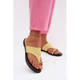 Dámské ploché eko kožené nazouváky se zlatým detailem Žluté Lavessa
