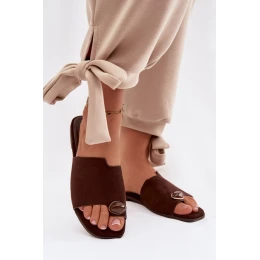 Dámské ploché pantofle s ozdobným detailem z eko semiše Čokoládové Selavine