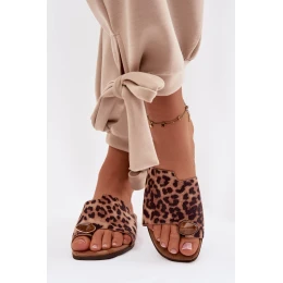 Dámské ploché pantofle s ozdobným detailem z eko semiše s leopardím vzorem Selavine
