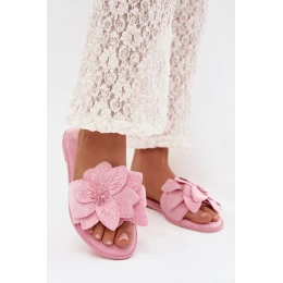 Dámské ploché pantofle s ozdobnými květinami Růžové Elzoria