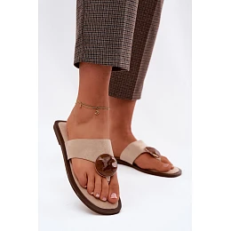 Dámské ploché žabky s ozdobou eko semiš béžové Selvessa