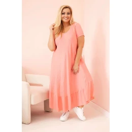 Dámske plus size šaty s krátkymi rukávmi a volánom z ľahkej viskózy v ružovej farbe
