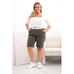 Dámske Plus veľkosť bavlnené šortky s opaskom Khaki