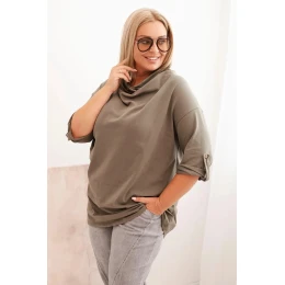 Dámske Plus veľkosť bavlnené voľné fit blúzka s vodou výstrihom Khaki