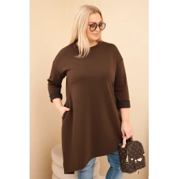 Dámske Plus veľkosť viskózové sukne s voľným strihom a dlhými rukávmi Brown