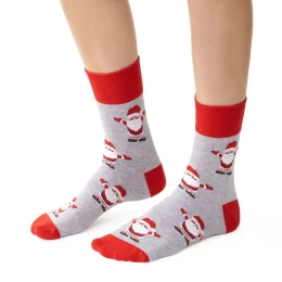 Dámske ponožky 136 109 Steven - sivé - vyrobené z kvalitnej bavlny - froté ponožky s protišmykovou podrážkou - mäkké, teplé, pohodlné a ideálne na chladné dni - vianočná kolekcia