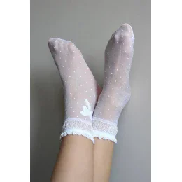 Tenké dámske vzorované ponožky s ozdobným sťahovacím lemom.