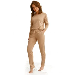 Dámske pyžamo 2578 Emily TARO - materiál je veľmi príjemný na dotyk - béžové tričko s dlhými rukávmi - dlhé nohavice majú elastický pás - pyžamo je vhodné na každodenné nosenie Zloženie materiálu: 100% viskóza