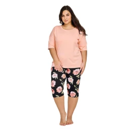 Dámske pyžamo 3161 Margot TARO - broskyňová farba - vyrobené z kvalitnej bavlny - tričko broskyňovej farby s krátkym rukávom - vzorované kapri nohavice