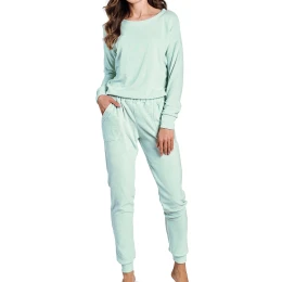 Dámske pyžamo 3243 Jessie TARO - vyrobené z kvalitnej froté bavlny - zelené tričko s dlhými rukávmi - zelené dlhé nohavice s vreckami na bokoch - rukávy a nohavice zakončené rebrovaným lemom