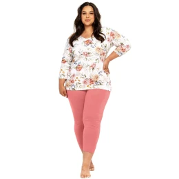 Dámske pyžamo 3262 Louisa TARO - biele - vyrobené z kvalitnej bavlny - biele tričko s trojštvrťovými rukávmi - zdobené kvetinovou potlačou - jednofarebné nohavice
