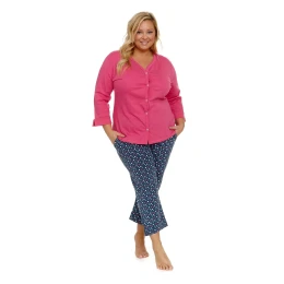 Dámske pyžamo 4566 Doctor Nap - vyrobené z veľmi kvalitnej a príjemnej bavlny - ružová košeľa na zapínanie as trojštvrťovými rukávmi - dlhé vzorované nohavice s vreckami - certifikát OEKO-TEX Standard 100