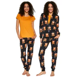 Dámske 3-dielne pyžamo 465/292 Bear 2 Cornette - vyrobené z kvalitnej bavlny - oranžové tričko s krátkym rukávom - čierna mikina zdobená potlačou so zapínaním na zips - dlhé vzorované nohavice Zloženie materiálu: 100% bavlna
