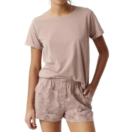 Dámske pyžamo 489 powder Atlantic - vyrobené z kvalitnej bavlny - staroružové tričko s krátkym rukávom - vzorované šortky s vreckami - široký elastický pás - priedušná tkanina, ktorá odvádza vlhkosť - strih pre pohodlie a voľnosť pohybu - kvalitná bavlna, ktorá je príjemná na dotyk a jemná k pokožke