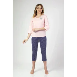 Dámske pyžamo s 3/4 dlhými rukávmi, vpredu zdobené jemnou potlačou. 3/4 dlhé nohavice sú súčasťou balenia.