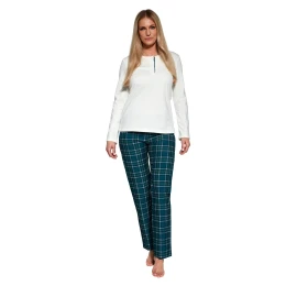 Dámske pyžamo 763/350 Nelly CORNETTE - vyrobené z kvalitnej a na dotyk príjemnej bavlny - krémové tričko s dlhými rukávmi - dlhé kárované nohavice Zloženie materiálu: 100% bavlna