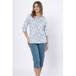 Vydajte sa za pohodlím a ženským štýlom s pyžamom BENITA 1640 od značky Leveza. Je vyrobené zo 100 % kvalitnej bavlny a zaručuje prirodzenú priedušnosť a mäkkosť, ktorá bude ideálna na spánok a večerný odpočinok. Vrchný diel pyžama tvorí blúzka s 3/4 rukávmi, zdobená kontrastným lemovaním a pôvabne zdobená motívom vtáčika. Morsko-biela farebnosť dodáva sviežosť a ľahkosť. 3/4 nohavice v jednotnej morskej farbe dotvárajú vzhľad a zaručujú voľnosť pohybu a pohodlie. Dostupné vo veľkostiach od M do 2XL - ideálne pre každú ženu, ktorá ocení pohodlie a estetiku.