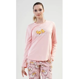 Dámske dlhé pyžamo Only for you. Pyžamo sa skladá z trička s dlhým rukávom a dlhých nohavíc. Tričko je jednofarebné, zdobí ho potlač ležiaceho medvedíka a nápis "Only for you". Nohavice sú svetlosivé, s potlačou medvedíkov. Nohavice majú elastický pás, šnúrku na stiahnutie a praktické vrecká. Použitý materiál je pružný a príjemný na dotyk. Tričko sa skladá zo 100 % bavlny v lososovej farbe a zo 70 % v sivej farbe, nohavice majú 100 % podiel bavlny.